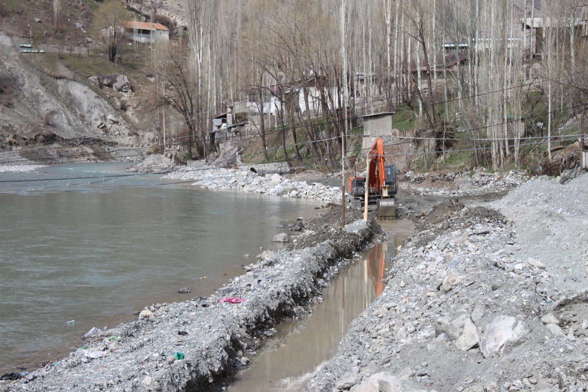 Ҳамзамон, бо дастгирии соҳибкорон ва саҳми бевоситаи сокинони деҳа дар соҳили дарё низ корҳои васеи соҳилмустаҳкамкунӣ ба роҳ монда шудааст. Тибқи иттилоъ, аҳолии маҳаллӣ зиёда аз ду километр соҳилро бо истифода аз техникаҳои пуриқтидор ва қувваи ҷисмонӣ мустаҳкам намуда истодаанд. Дар ин раванд аввал сангҳои калонҳаҷм дар соҳил ҷойгир карда шуда, баъдан болои он бо хоку шағал пӯшонида мешавад, ки ин усул ба устувории соҳил ва пешгирии эрозия мусоидат мекунад.